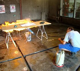 Jeder kennt die merkwürdigen Düsen in der Deckenverkleidung von Büros und Geschäften. Meistens ist auch noch eine kleine Glasampulle mit farbiger Flüssigkeit zu sehen. Sprinkleranlagen sind in Deutschland in vielen Gebäuden gesetzlich vorgeschrieben. Aber wann genau lösen sie aus? Bei Rauch? Oder Hitze? Und kann eine Sprinkleranlage den Brand löschen? Wir haben es ausprobiert.